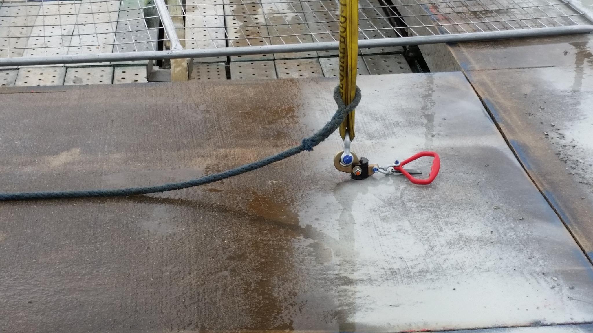 This is a new patented device for removing pre-sawn concrete slabs without using a breaker. Designed to quickly remove sections of concrete bridge decks, repair road beds or renovate floor space in buildings. The Monkey Fist works similar to a wedge anchor, but is reusable. Simply core drill a 2″ hole in or near the center of the piece to be removed (for balance), insert the Monkey Fist and lift the slab out. To recover the Monkey Fist just lift the release handle, remove and reuse.
