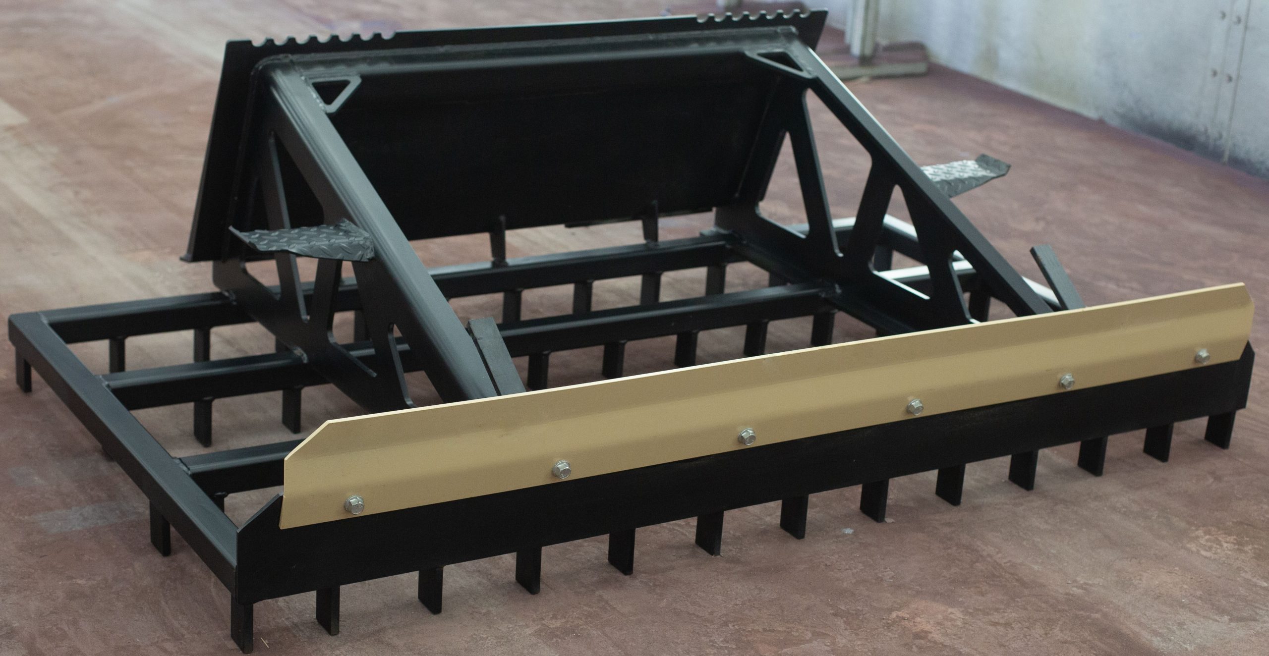 - 2″ x 2″ heavy wall square tube construction on 6′ and 7′ wide rake platforms.
