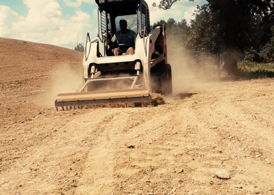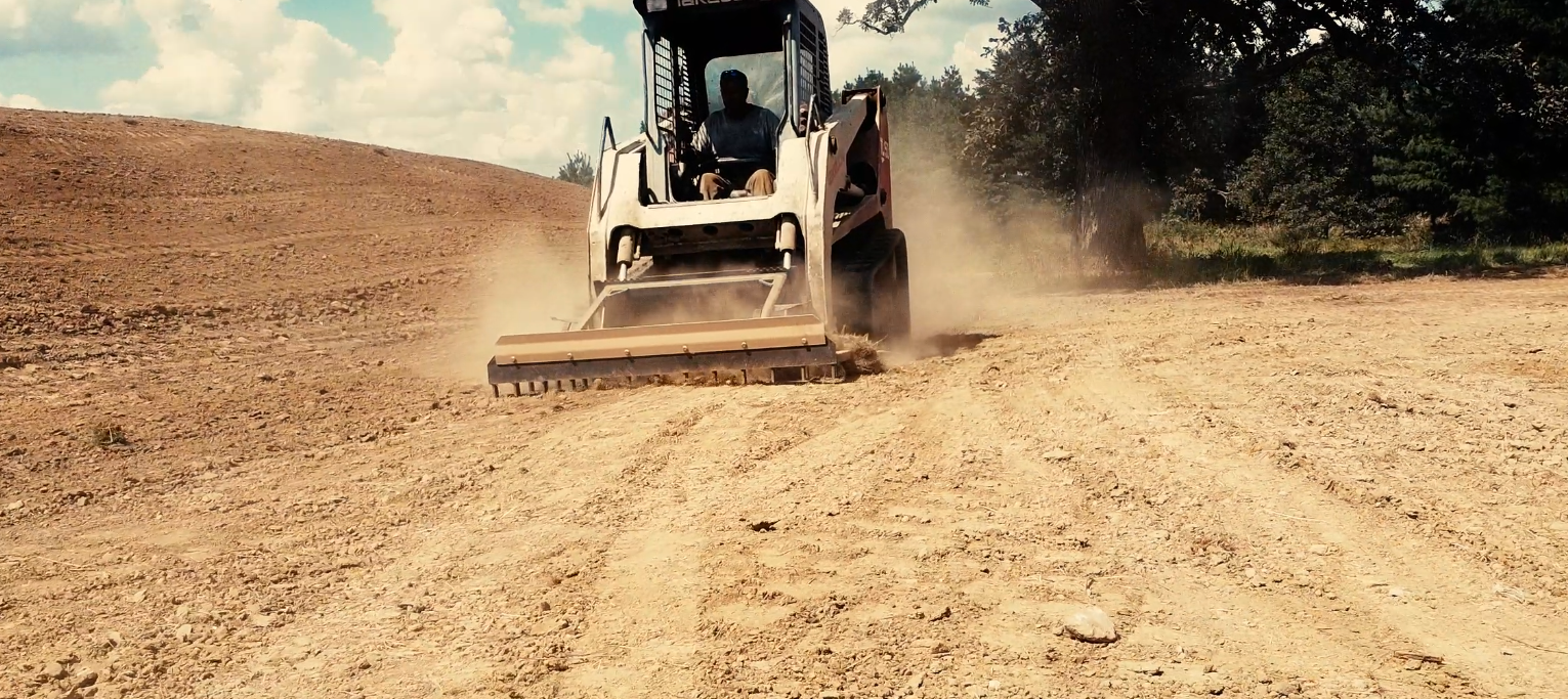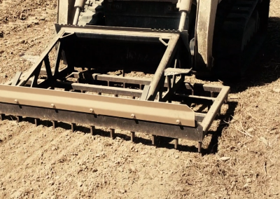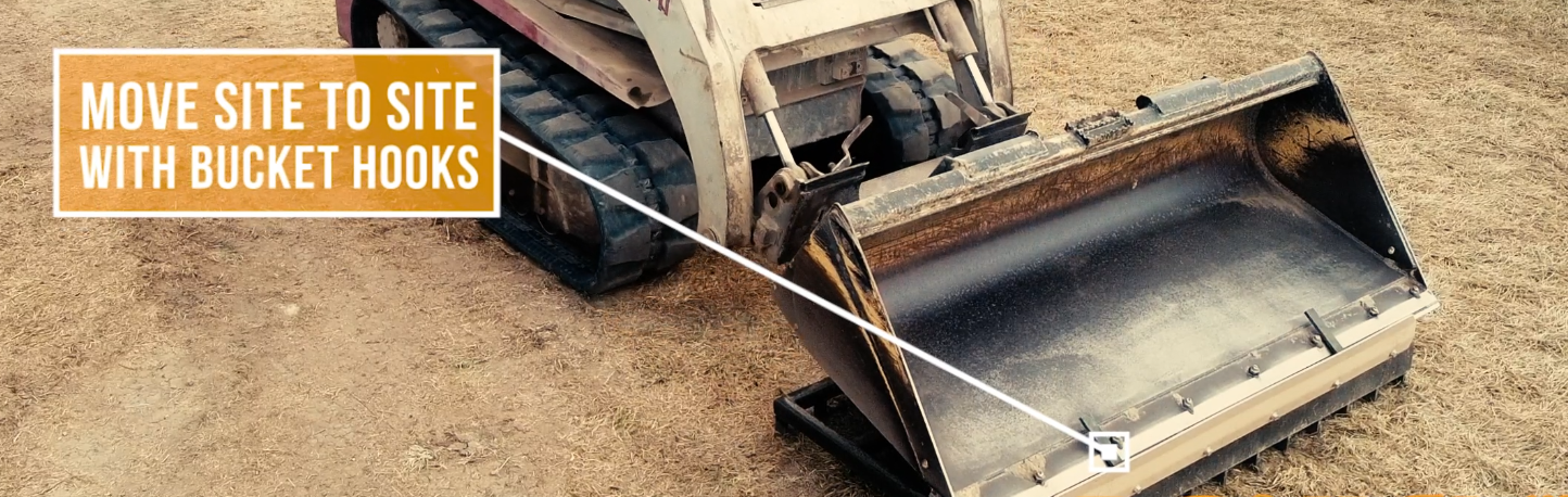 This rugged harrow style rake makes quick work of site prep and finishing such as leveling, grading and seed preparation. Side steps are available for easy access to skid steer cab and bucket hooks allow operators to conveniently carry a bucket when moving from site to site. The attached dozer blade in the front allows the user to quickly level piles of material.